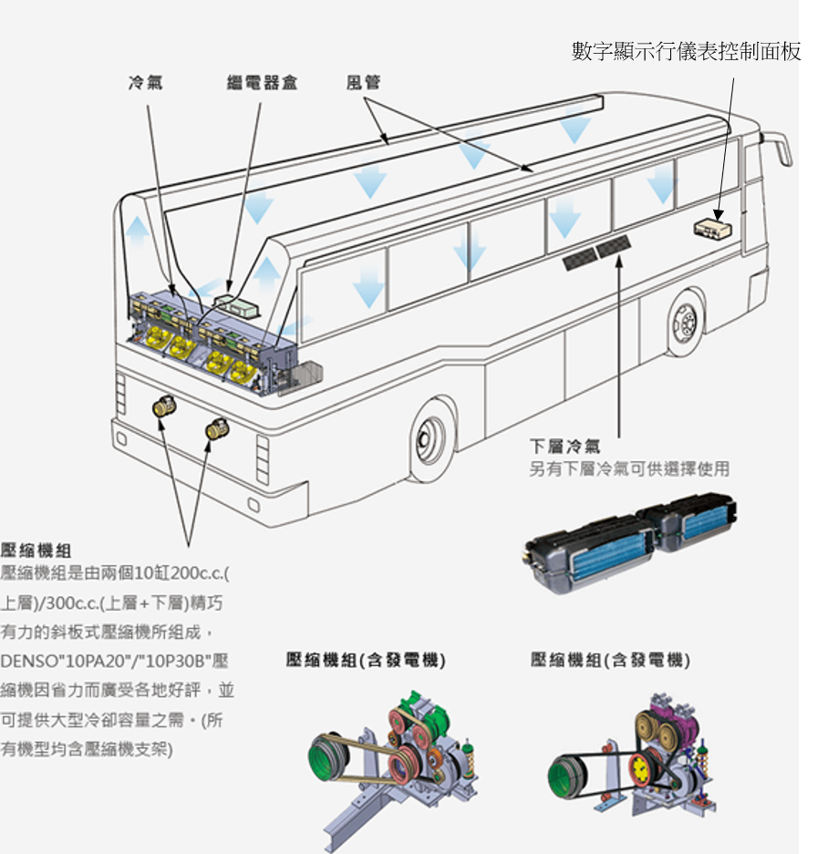 ※RK、RN底盤用之冷氣組件,另配備95A發電機一顆。