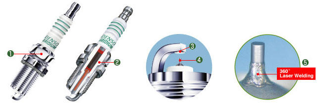 | 5. 360°全周雷射熔接 因口徑僅有0.4mm之銥晶片,屬於擁有極高熔點的合金材料,必需採用高能源雷射熔化,來接合全周的接合面。如此在各式各樣的駕駛條件下,也不易發生電極變化,於行駛中發揮更穩定的行駛性能。(全系列) |