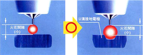 U溝接地電極在不改變火花間隙的情況下,可確保大空間容量,因此在低跳火電壓的狀態下可實現卓越的點火性能。