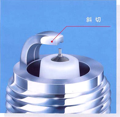 斜切接地電極可縮小火種接觸接地電極的面積,因此能減少被電極所剝奪的熱能,進而大幅提昇點火性。