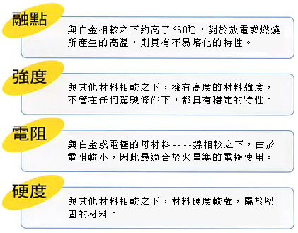 銥合金性能型為了提昇點火性能,已經成功的將電極細度做到極限。