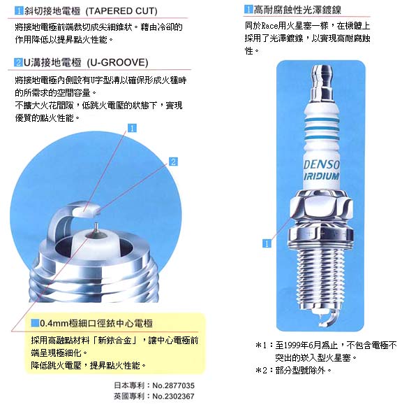此外,因為減少了接地電極前端的表面積與重量,相對的所承受的熱源及震動也減少。而成為適用於各種駕駛條件下的火星塞規格。