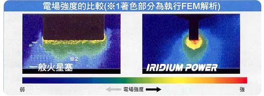 用來表示對一般火星塞與銥合金性能型施加一定電壓時的電場強度。